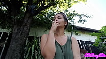 Brunette smoking outdoor 6 min