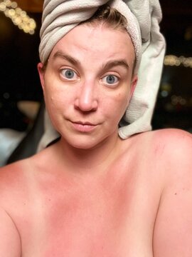 Fresh faced, right out of bed. ? Little sun burn on my nose but happy to be out in the sun.