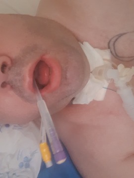 Mas tarde para poder torturarme atlibitum se opto por hacerme una traqueostomia con una cánula don globo para poder hacer que cuando ellos no querían que se me oyese se me inflase el globo y podían torturarme sin que los vecinos me escuchases aunque de forma normal puedo hablar y se me conecto a una maquina de ventilación para poder jugar con mi respiración y tras 10 anyos de aquello ya no puedo vivir sin la maquina