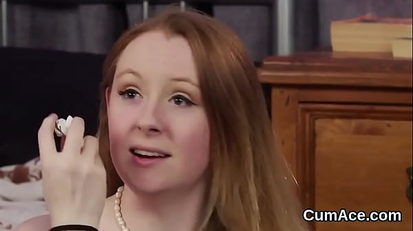 Peculiar sex kitten gets sperm load on her face eating all the cream 5 min