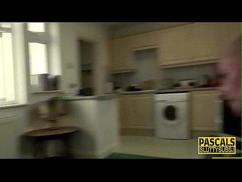 Sub skank takes cock in threeway