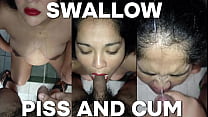 Mi hermosa vecina se queda sin agua y viene a bañarse a mi casa lo que no sabe es que no tengo puerta en el baño me dieron ganas de mear asi que la orine en su cara y boca y le di de tragar mi semen 13 min